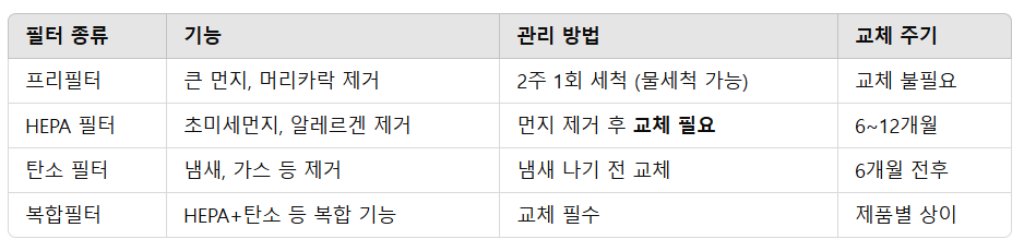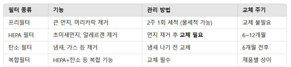 - ✅ HEPA 필터 점검 – 색깔이 누렇게 변하면 교체 시기