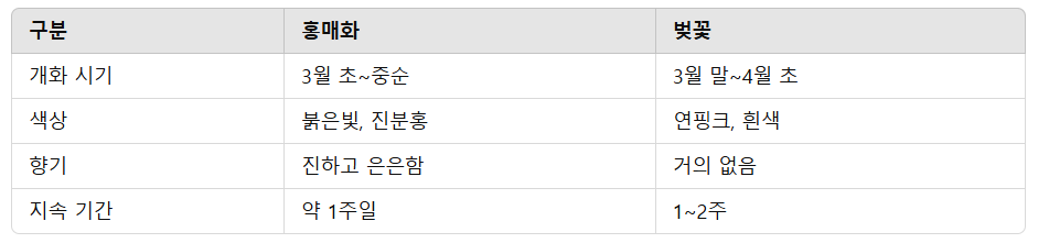 홍매화 사진 찍는 팁 모아보기4. 홍매화 vs 벚꽃, 무엇이 다를까?
